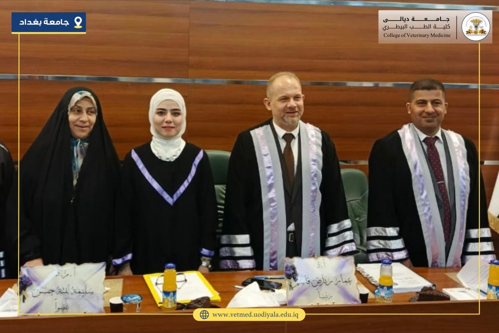 ترأس السيد عميد كلية الطب البيطري – جامعة ديالى صباح يوم الاثنين الموافق 17 تشرين الثاني 2025 لجنة مناقشة رسالة الماجستير للطالبة آيات علي حسين في كلية الطب البيطري – جامعة بغداد، والموسومة: