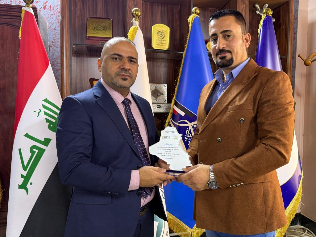 قدّم السيد معاون العميد للشؤون العلمية والطلبة أ.د زاهد إسماعيل محمد درع الشكر والتقدير إلى السيد معاون العميد للشؤون الإدارية والمالية أ.م.د طارق رفعت منت، تثميناً لجهوده المتميزة ومساهماته الفاعلة في إنجاز المتطلبات الإدارية والتنظيمية الخاصة بالمؤتمر الدولي الثاني والوطني الثالث للعلوم البيطرية، الذي أُقيم في رحاب جامعة ديالى يوم 29 تشرين الأول 2025.
