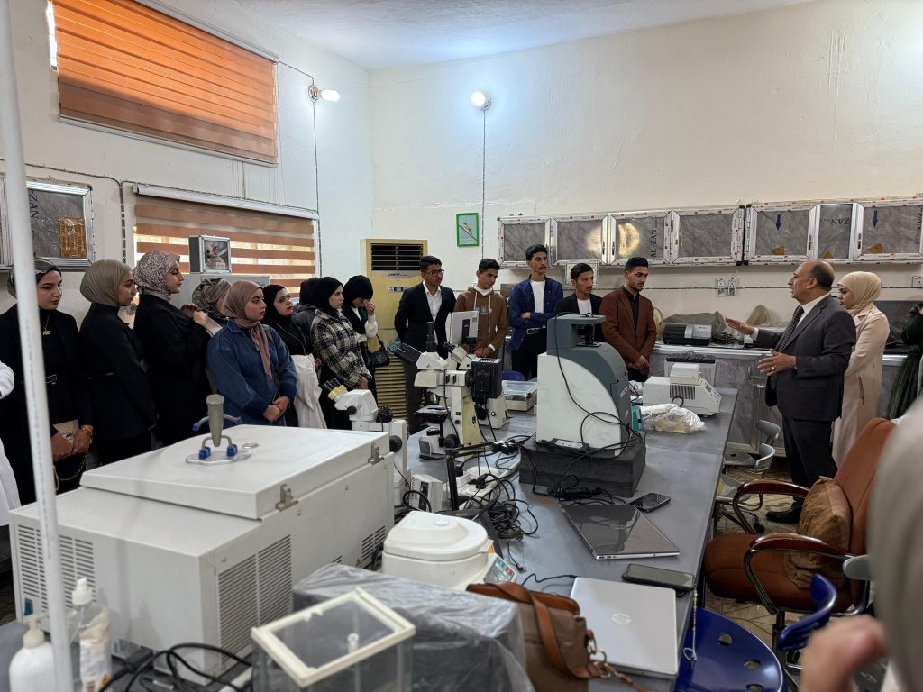 نظّمت كلية الطب البيطري – جامعة ديالى جولة علمية للوفد الزائر من تدريسيي وطلبة الجامعة التقنية الوسطى / المعهد التقني بعقوبة – قسم التمريض بهدف الاطلاع على المرافق العلمية والمختبرات المتخصصة في الكلية.