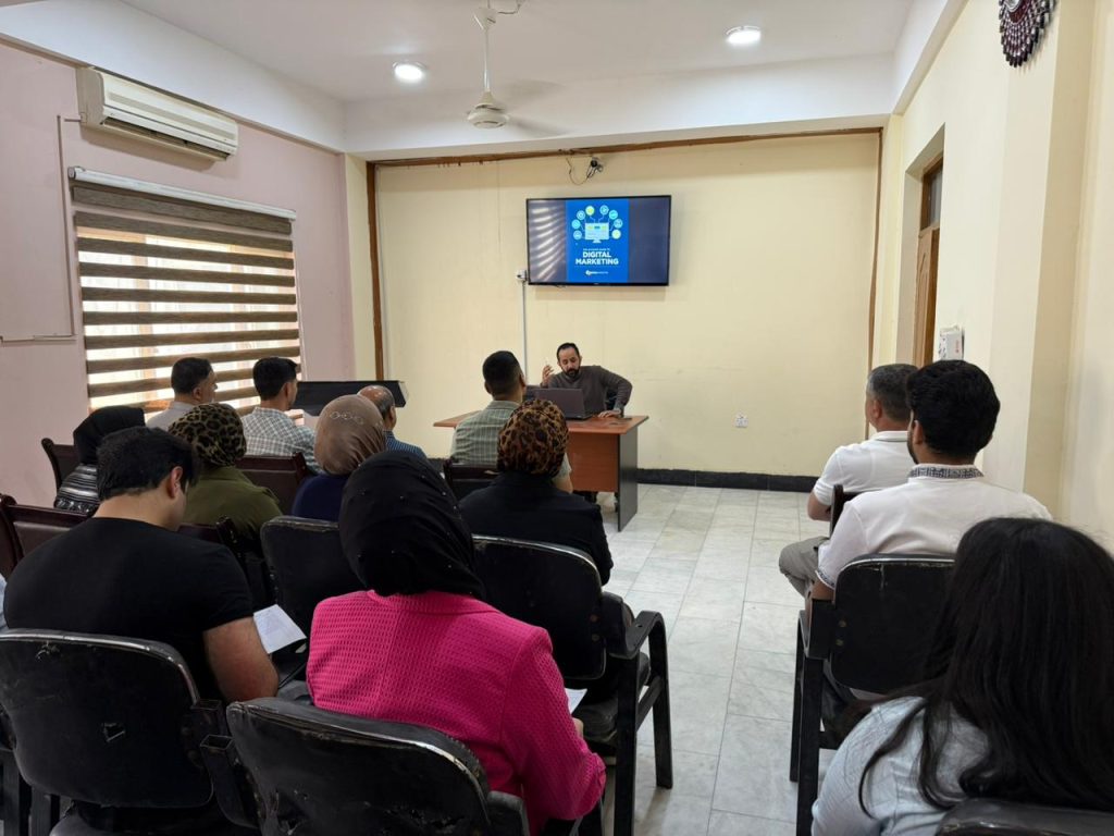 حاضر في الدورة م.م محمد عبد الحميد حيث تناول خلالها الأسس الحديثة في إعداد وإدارة الحملات الإعلانية عبر منصات التواصل الاجتماعي وآليات استهداف الجمهور وتحليل البيانات لتحقيق أفضل النتائج.