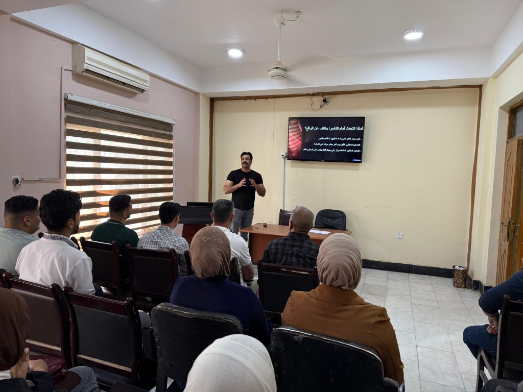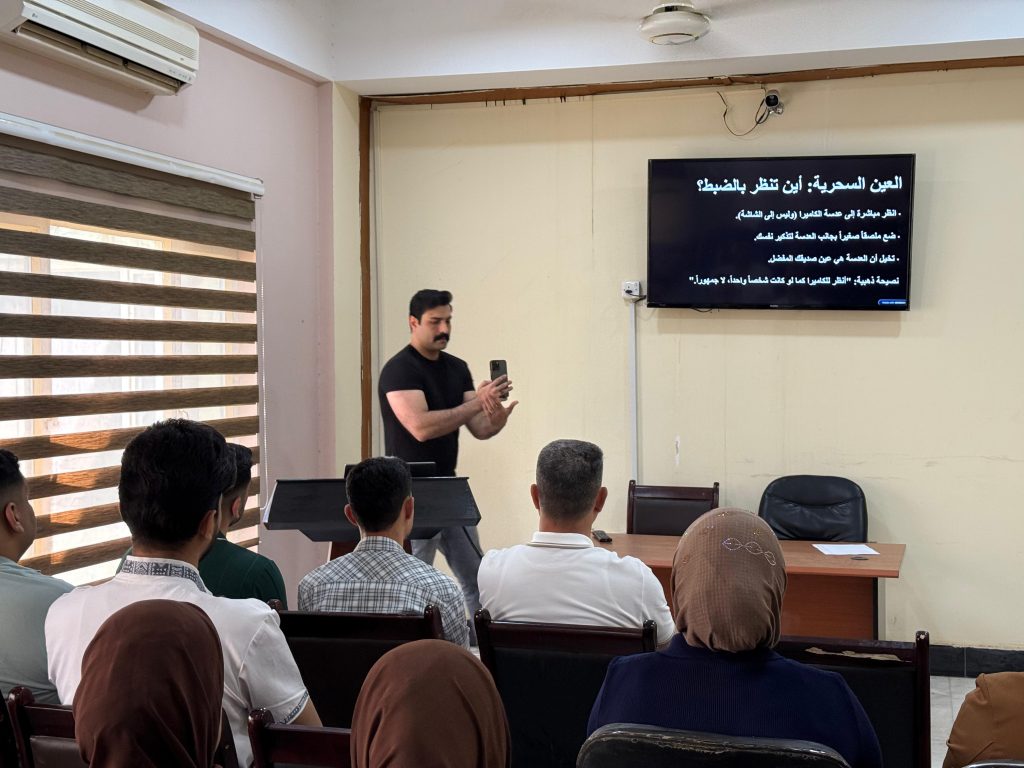 حاضر في الندوة م.م أحمد أسماعيل حيث تناول فيها مهارات الإلقاء والتواصل الفعّال أمام الكاميرا وأهم التقنيات التي تساعد في بناء الثقة بالنفس وتحسين لغة الجسد ونبرة الصوت أثناء التصوير.