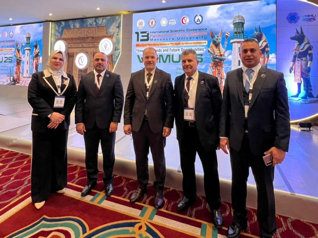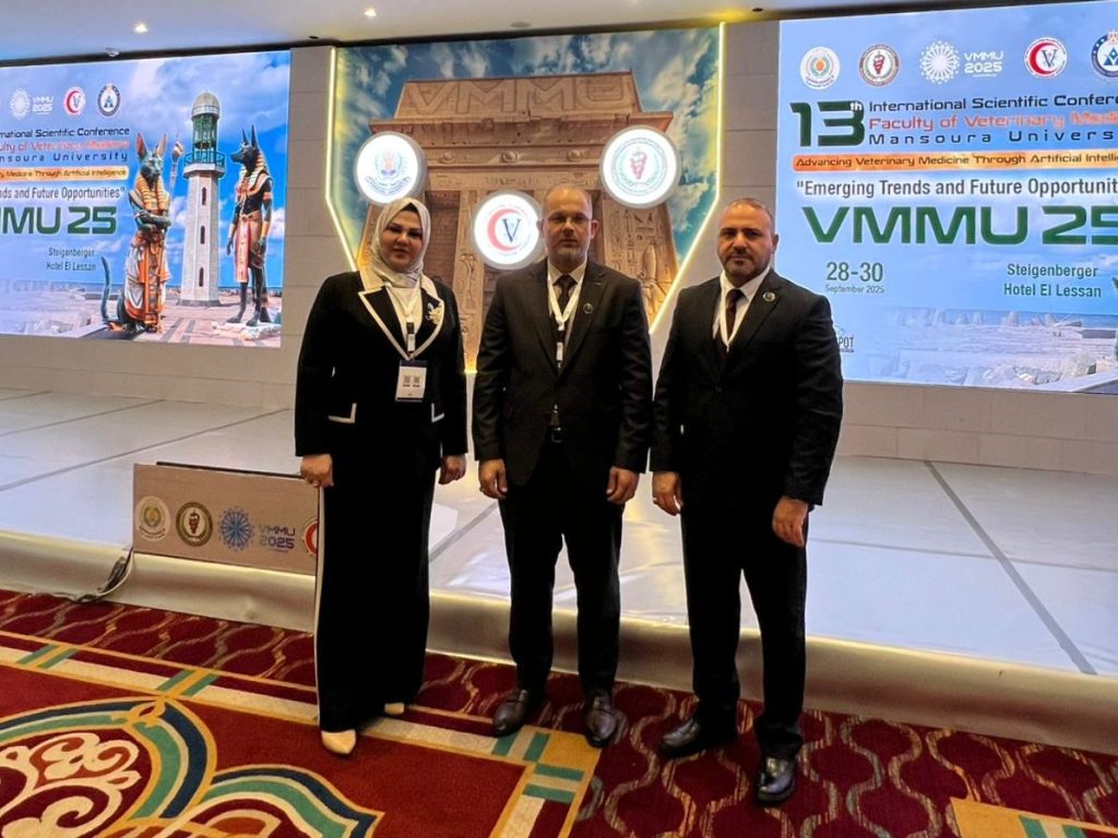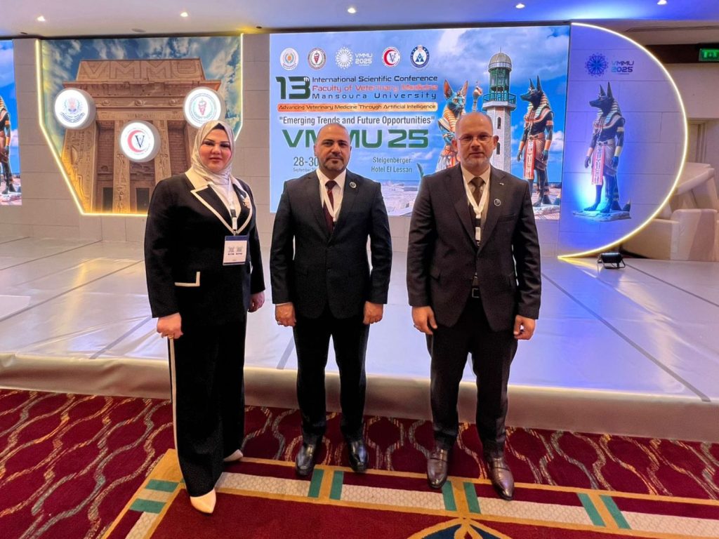شاركت كلية الطب البيطري في جامعة ديالى بالمؤتمر الدولي العلمي الثالث عشر لكلية الطب البيطري – جامعة المنصورة الذي عُقد في مدينة رأس البر بجمهورية مصر العربية للمدة من 28 – 30 أيلول 2025 تحت شعار: “تطوير الطب البيطري من خلال الذكاء الاصطناعي: الاتجاهات الناشئة والفرص المستقبلية”.