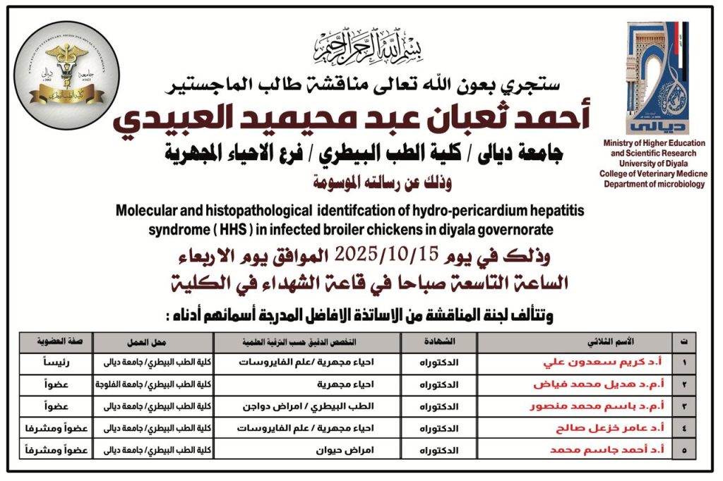 أقامت كلية الطب البيطري – جامعة ديالى / لجنة تنفيذ استراتيجية الامن الوطني العراقي ندوة توعوية متخصصة بعنوان “استراتيجيات الأمن الوطني العراقي”وذلك بتاريخ اليوم الاثنين الموافق 1 كانون الاول 2025 في إطار سعيها لتعزيز الوعي الوطني وترسيخ مفاهيم الأمن الشامل …